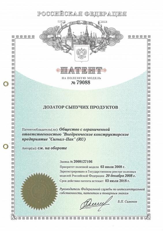 Патент на комбинационный дозатор